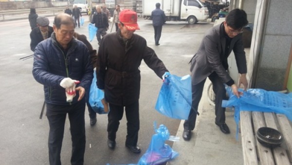 이동면 경로당 노인, 설맞이 마을 대청소 나서
