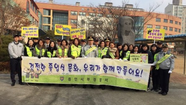 용인서부경찰서(서장 이 석)은 지난 11일 동천동 소재 손곡중 내에서 경찰서장, 전정심학교장, 학부모 등 약 30여명이 참석한 가운데 강압적 졸업식 뒷풀이 예방을 위한 간담회 및 캠페인을 가졌다고 밝혔다. 졸업식 시작 전 진행된 사전 간담회에서는 졸업식 직 후 학생들이 뒤풀이 장소로 이용될 수 있는 공원, 후미진 곳 등 우범지대를 선정하여 합동 순찰…