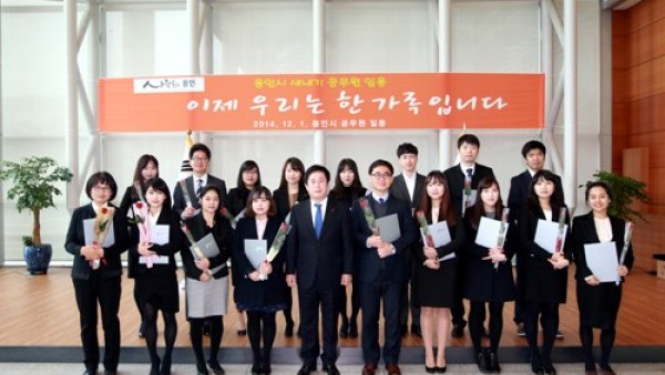 용인시는 1일 시청 1층에 새롭게 단장한 로비에서 새내기 공무원 17명에 대한 임용식을 가졌다. 이번 행사는 그 동안 단순히 임용장만 수여하던 형식적 의식에서 벗어나 용인시 공무원 가족이 된 것을 환영하는 의미에서, 임용장과 함께 장미꽃을 전달하고 티타임도 가지는 등 다채롭게 꾸며져 행사의 의미를 더했다. …