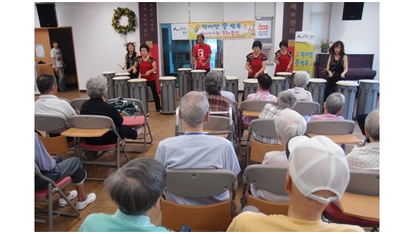 용인시 처인구의 문화소외계층을 찾아가는 공연 ‘작지만 큰 행복’의 3회 무대가 지난 4일 ‘온누리요양센터’에서 열렸다. ‘작지만 큰 행복’은 읍면동 주민자치센터에서 다양한 기예를 연마한 동아리 회원들이 요양센터, 복지관 등을 찾아가 펼치는 재능기부 소공연이다. 3회 무대는 양지면주민자치센터(위원장 위복량)의 난타 동아리 ‘산울림…