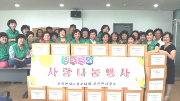 용인시 처인구 모현면은 2일 불우이웃돕기 사랑나눔 행사를 가졌다. 모현면새마을협의회(지도자회장 이제원, 부녀회장 최옥희) 회원들이 면사무소 소회의실에 차려진 임시 작업실에 모여 회비로 구입한 송편, 김, 양말 등을 상자 120개에 담아 저소득 가정, 독거노인, 조손 가정 등 120가구에 전했다. 최옥희 새마을부녀회장은 “작은 …