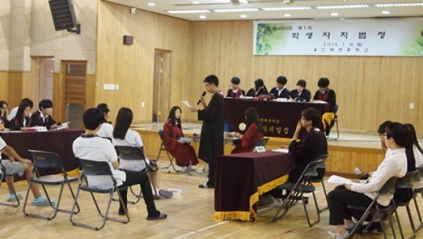 용인 백현중학교 에서 학생 스스로 소통과 자치를 통해 학생 중심의 행복한 학교 문화를 만들어가기 위한 학생자치법정이 교장을 비롯한 교사들이 참관한 가운데 강당에서 지난 7월 14일 학생들이 직접 자치법정을 열어 학생활동을 벌였다. 백현중학교에서는 학생들이 스스로 만들어가는 학교문화로서의 자치법정은 벌점초과자에 대한 교육 처분을 목적으로 학생들로 구…