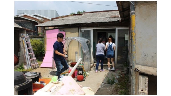 자원봉사자 사랑 愛 집고치기 구슬땀