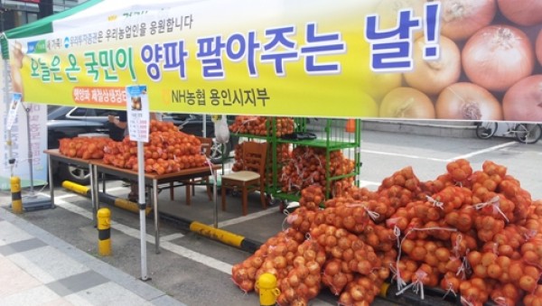 NH농협 용인시지부는 양파의 작황호조와 소비부진으로 어려움을 겪고 있는 농민들을 돕기 위한 ‘오늘은 온국민이 양파 팔아주는 날’행사를 27일 실시하였다. 시지부는 이날 사무소 주차장에서 양파 직거래 장터를 열고 양파를 시중가 대비 약 40% 저렴한 가격으로 판매했다. 홍재범 지부장은 “농산물 값 하락 등으로 고통을 겪고 있는 농…