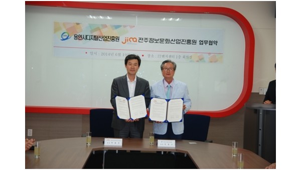 용인시디지털산업진흥원(원장 유종수)은 전주정보문화산업진흥원(원장 박광진)과 지난 6월 19일 상호협력을 위한 업무협약을 체결 하였다. 이번 협약은 용인시 및 전주시 지역 IT․ CT분야 등 공동사업 추진을 통해 지역산업 발전과 광역경제권 협력사업의 융․복합을 통한 창조경제 발전 모델을 제시하고자 맺어졌다 양…