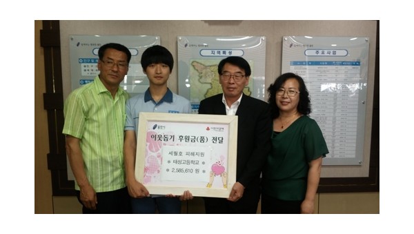 용인 태성고등학교(교장 홍순호)는 지난 9일 세월호 침몰 사고 피해자와 희생자를 돕기 위한 성금 2백58만5,610원을 용인시에 기탁했다. 용인시는 이날 오후 2시 처인구청장실에서 학생 및 학부모 대표 등 3명이 참석한 가운데 전달식을 갖고, 경기사회복지공동모금회를 통해 세월호 사고 피해 가족에게 성금을 전달하기로 했다. 이번 …