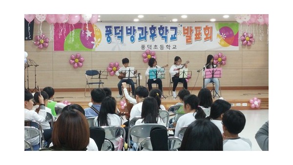 풍덕초등학교는(교장 김동길) 10월 17일(월)부터 21일(금)에 걸쳐 “우리들의 신나는 가을축제, 구경 오세요!”라는 슬로건 아래 2학기 방과후학교 부서별 수업공개 및 발표회를 개최한다. 18일(수) 풍덕초 시청각실에서는 플룻 부서 및 우쿨렐레 부서의 어린이들이 그동안 갈고 닦아온 실력들을 고사리 손으로 열심히 뽐내고 있었다.  …