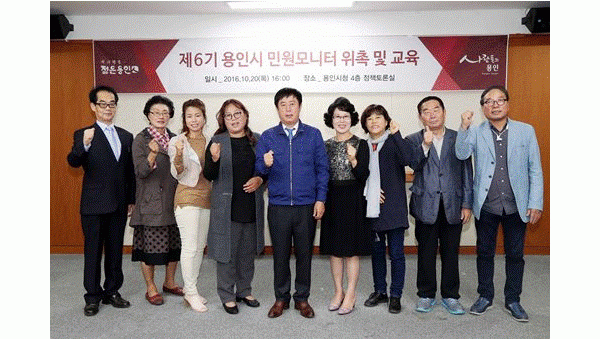 용인시는 시민의 불편사항이나 지역 현안을 모니터링하고 새로운 시책이나 아이디어를 제공하는 제6기 민원모니터 17명을 새로 위촉했다고 20일 밝혔다. 이번에 위촉된 민원모니터는 5기 민원모니터의 2년 임기가 만료됨에 따라 읍면동장 추천을 받아 대학생, 회사원, 주부, 통장 등 다양한 시민들로 구성했다. 새로 위촉된 민원모니터들 앞으로…