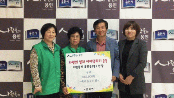 용인시 처인구 양지면은 28일 새마을부녀회가 바자회 행사로 얻은 판매 수익금 68만5천9백원 전액을 이웃돕기 성금으로 기부받았다고 밝혔다. 새마을부녀회는 지난 26일 주민자치센터에서 주민 100여명을 대상으로 중고물품과 먹거리 판매 등 바자회 행사를 실시했다. 동 관계자는 “바자회서 사용하지 않는 물건을 교환해 자원의 재활용을 활성…