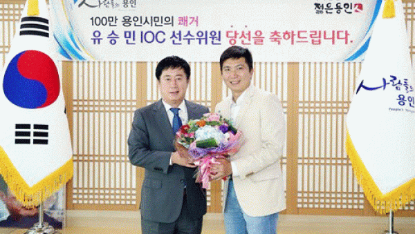 정찬민 용인시장은 7일 한국 탁구의 간판스타로 국제올림픽위원회(IOC) 선수위원으로 선정된 유승민씨를 초청해 위원 당선을 축하하고 환담을 나눴다. 이날 초청은 수지구에 거주하는 유 위원이 용인시민으로서의 쾌거를 올린데 대해 100만 시민과 함께 격려하고자 마련됐다. 정 시장은 이날 “유 위원의 당선은 용인시민으로서 큰 자랑이자 쾌거…