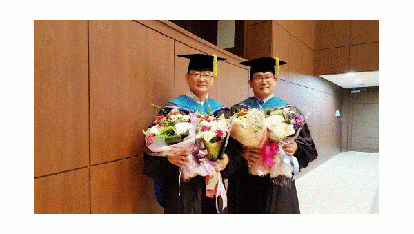 바쁜 업무 중에도 주경야독하며 40~50대의 나이에 박사학위를 딴 용인시 공무원이 화제다. 주인공은 교통정책과 유기석 과장(55)과 위생축산과 송석윤 팀장(48) 등 2명. 이들은 우연히 지난 18일 명지대에서 나란히 행정학 박사학위를 받았다. 유 과장은 용인시 경량전철 사업을 중심으로 한‘정책흐름 모형에 입각한 정책변동 사례 연구’…