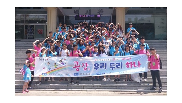 용인시청소년미래재단(이사장 정찬민) 용인시청소년수련관은 지난 8월 10~11일 1박2일간 공주유스호스텔에서 장애청소년 18명, 비장애청소년 43명과 함께 ‘공감 우리두리 하나’ 캠프를 진행 하였다. ‘공감 우리 두리 하나’는 장애청소년과 비장애청소년을 1:2 또는 1:3로 짝궁이 되어 1박 2일 동안 다양한 활동을 함께 함으…