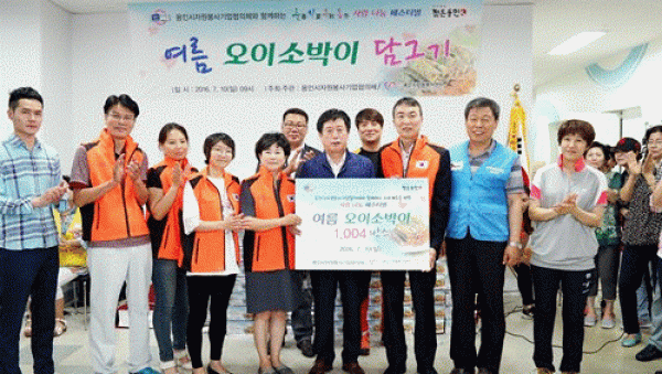 용인시자원봉사센터는 10일 기흥구 동백동 영국전자 본사에서 관내 20개 기업 임직원과 자원봉사자 등 150명이 참여한 가운데 오이 소박이 800접을 담궈 어려운 이웃 1,004가구에 전달했다고 밝혔다. 이번 행사는 지난달 출범한 용인시자원봉사 기업협의체가 첫번째 연 것으로, 지역 농산물을 소비해 지역 경제에 도움을 주고 어려운 이웃도 돕는 차원에서 실…