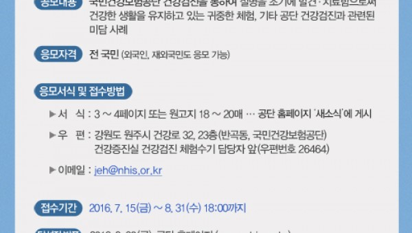 제9회(2016년도) 건강검진 체험수기 공모