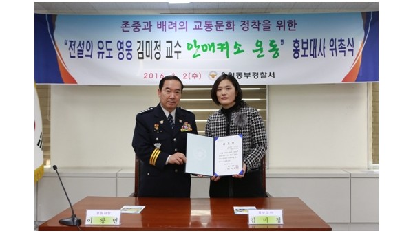 용인동부署, 여자 유도의 살아있는 전설 김미정 교수, 『안매켜소운동』홍보대사 위촉