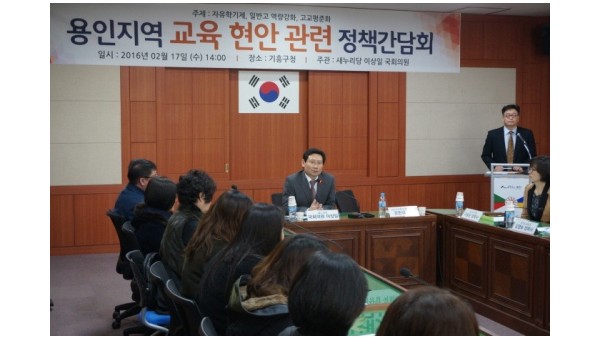 - 17일 용인시 기흥구청 소회의실에서 자유학기제, 일반고 교육역량 강화, 고교평준화에 대해서 경기도 교육청 및 용인교육지원청 담당자와 용인지역 학부모 80여명이 모여 열띤 질의응답 가져 - 이 의원 “일선 교육현장에서 학부모들, 학생들이 피부로 느끼는 애로사항과 문제점에 대해서 교육 담당자들과 함께 해법을 마련하도록 노력” 새누리당 이상일 국회의원은 17일 용인시 기흥구청 소회의실에서 ‘…