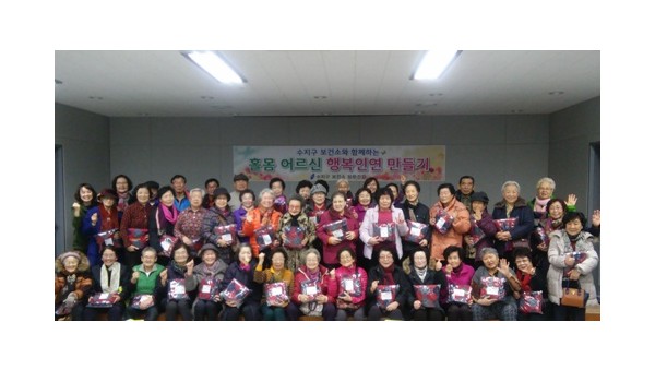 용인시 수지구보건소는 지난 10일 홀로 사는 어르신들의 우울증 예방을 위해 ‘행복인연 만들기 행사’를 펼쳤다고 밝혔다. 이 행사는 홀로 사는 어르신들을 서로 연결시켜 주는 것으로 이번에 58명이 인연을 맺게 됐다. 인연을 맺은 어르신들은 한달에 한번씩 모여 서로 안부 묻기, 이름 알고 불러주기 등을 하고, 노래도 함께 부르며 웃음치료교실을 진행한다. …