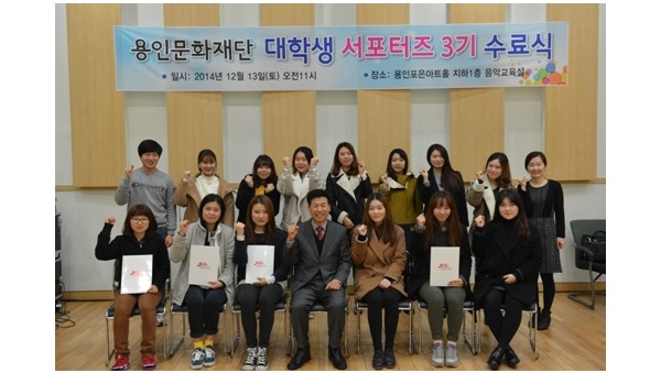 (재)용인문화재단(대표이사 김혁수)은 지난 13일 오전 11시 용인포은아트홀 음악교육실에서 대학생 서포터즈 3기 수료식을 개최했다. 대학생 서포터즈 3기로 선발된 30명은 6개 조로 나뉘어 지난 9월부터 12월…