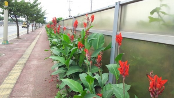용인시 기흥구 보정동주민센터 앞 도로와 녹십자(주) 앞 신수대로에 칸나꽃길이 조성돼 주민들에게 새로운 볼거리를 선사하고 있다. 보정동 칸나꽃길은 보정동 새마을회와 통장협의회, 부녀회, 노인회 회원들, 동 주…