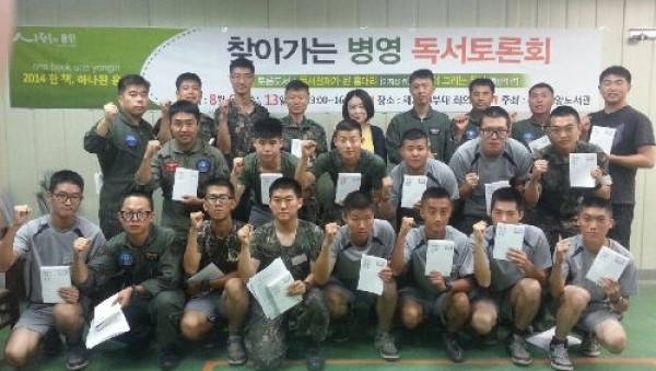 - 2014 한 책, 하나된 용인 <책 읽는 군부대> 지원 - 용인중앙도서관은 오는 14일 관내 제2053부대 소속 장병 및 장교들과 올해의 한 책 선정도서인 최진석 작가의 `인간이 그리는 무늬` 도서를 주제로 `찾아가는 병영 독서토론회`를 진행한다. …