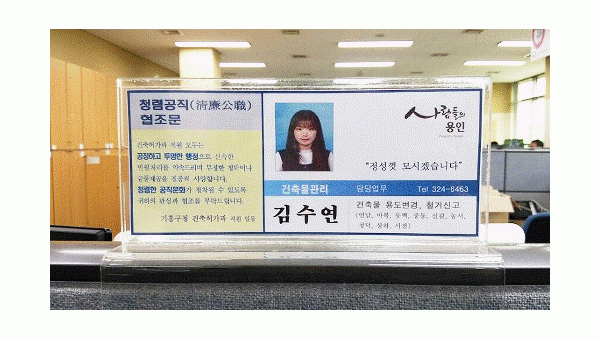 기흥구, 건축허가과에 ‘청렴명패’ 붙인다