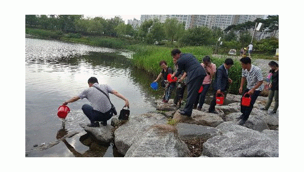 용인시 기흥구 동백동 주민자치위원회는 지난 24일 호수에 서식하는 모기유충을 퇴치하기 위해 주민들과 주민자치위원 등 50명이 참가해 동백호수공원과 연못 등지에 미꾸라지 90kg을 방사했다고 밝혔다. 이는 미꾸라…