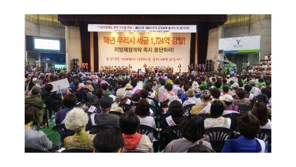 - 재정개혁 부당성 성토하며 재정개혁안 철회 강력 요구 - - 100만 시민서명운동 전개와 홍보 및 설명회 등 추진 - 정부의 지방재정개혁안을 저지하기 위해 결성된 ‘용인시민 세금지키기 운동본부’는 25일 오후 용인실내체육관에서 시민 5천여명이 참석한 가운데 발…