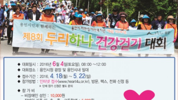 용인시처인장애인복지관(관장 곽상구)은 오는 6월 4일(토), 용인시민과 함께하는 ‘제9회 두리하나 건강걷기 대회’(이하 걷기대회)를 개최한다고 밝혔다. 올해로 9회째를 맞이하는 걷기대회는 용인시처인장애인복지관이…