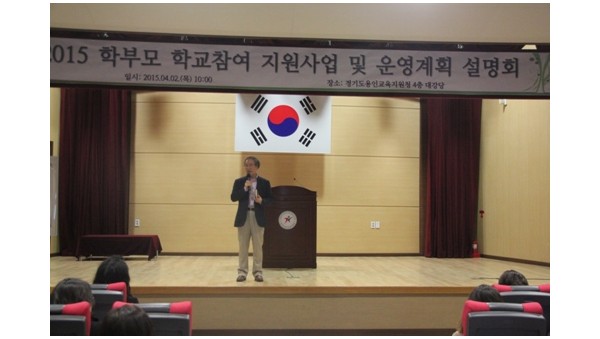 경기도용인교육지원청(교육장 차혜숙)은 2일(목) 10시 2015학년도 학부모회 임원진을 대상으로 4층 대강당에서 『2015 경기교육사랑 학부모회 연수』를 실시하였다. 양재경 교수학습국장은 인사말을 통해 "학교교육에…