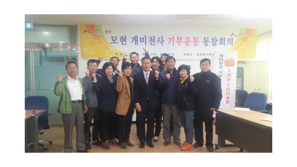 용인시 모현면 기관·단체장들이 어려운 이웃을 위해 1,004원의 1계좌 이상을 자유롭게 기부하는 ‘개미천사(1004) 기부운동’의 홍보대사로 나선다. 모현면 새마을부녀회, 주민자치위원회, 모현면 주민들로 구성된 …