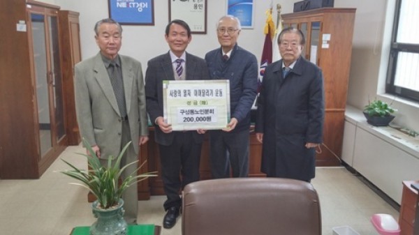 용인시 기흥구 구성동 단체들이 이웃돕기 ‘사랑의 열차 이어달리기’ 에 적극 동참, 온정 릴레이를 펼치고 있다. 용인시 기흥구 구성동 노인분회(회장 김중근)는 구성동 각 경로당 노인회원들의 따뜻한 마음을 담은 성금 20만원을 19일 구성동주민센터에 기탁했다. 김중근 노인회장은 “적은 금액이지만 추운 겨울을 어렵게 보내고 있는 이웃들에게 조금…