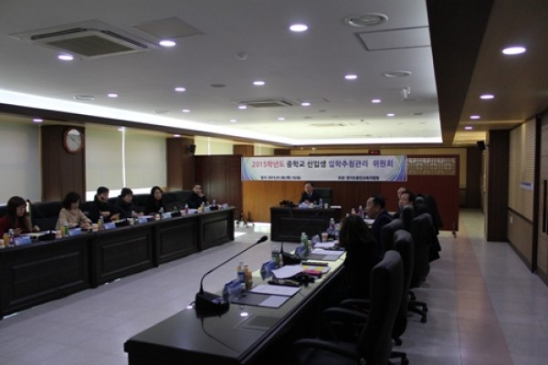 경기도용인교육지원청(교육장 차혜숙)은 8일 오전 10시에 용인교육지원청 대회의실에서 용인관내 10개 중학군에서 학교장 및 학부모 대표 등 19명의 위원이 참석한 가운데 2015학년도 중학교 신입생 배정을 위한 입학추첨관리위원회를 개최했다. 본 회의에서는 2015학년도 신입생 배정업무 시행계획에 따라 2014년 11월 18일부터 11월 21일까지 접수한 배…