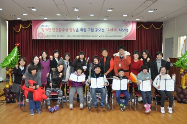 용인시처인장애인복지관(관장 정의철)은 24일, 2014년 장애인 인권감수성 향상을 위한 그림 공모전 ‘오마주’ 시상식을 성황리에 개최했다. 용인시처인장애인복지관(이하 복지관)의 주최로 열린 이번 공모전은 우리 사회에서 일어나는 인권 침해와 차별 등의 문제를 알리고 인권의식과 인권감수성 향상을 위해 진행되었다. 공모결과 최우수상(김…