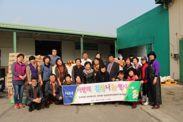 모현농협임직원과 함께나눔 여성봉사단은 홀몸어르신과 저소득가구의 월동준비를 위해 모현면 농업경영인들이 재배해서 기증한 무, 배추를 이용해 2014년 11월5~6 양일간 사랑의 김장나눔 행사를 마련했다 이번 행사통해 담금 김치는 여성봉사단이 기증한 라면50박스, 농협에서 준비한 아동용 스키장갑53켤레와 함께 모현관내 40가구, 지역아동센타3곳, …
