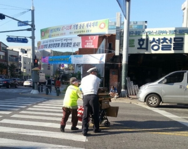 용인동부경찰서(서장 정승호)는, 새벽시간 어두운 길에서 리어카를 끌고 다니며 위태롭게 폐지를 수거하러 다니시는 어르신들의 교통안전을 위해 순찰하면서 만나는 노인분들에게 교통안전교육을 하고 형광 조끼를 전달하였다. 특히, 야간이나 새벽시간 운전자의 시인성이 약해져있을 때 무단횡단이나 이면도로를 보행하는 어르신들의 교통사고가 다발하고 있는 만큼 어르신들…