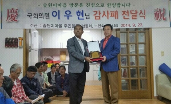 양지면 숲원이마을 주민들, 이우현 의원에 감사패