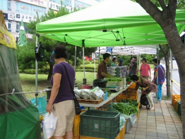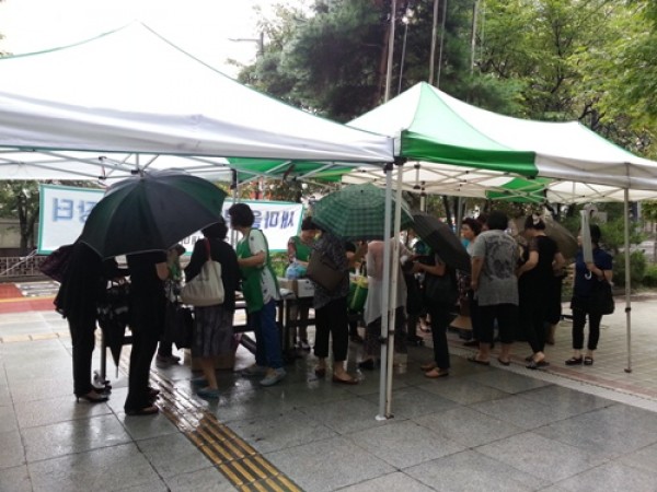 용인시 수지구 상현1동 새마을부녀회는 지난 3일 추석 명절을 앞두고 각 지역 신선한 농산물 판매를 위해 동주민센터에 직거래장터를 개설, 비오는 굳은 날씨에도 많은 주민들이 찾아와 성황리에 맞췄다. 직거래장터에서는 용인 표고버섯, 복숭아 등 농촌지역의 우수한 농산물을 비롯해 송편, 미역, 다시마 등 질 좋은 지역 생산품을 도시소비자들에게 홍보하고 시중…