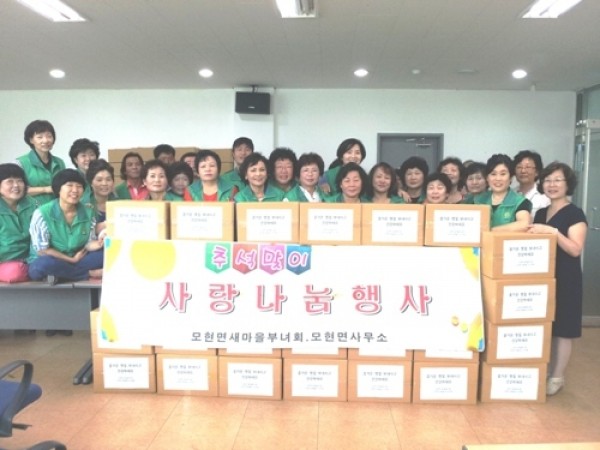 용인시 처인구 모현면은 2일 불우이웃돕기 사랑나눔 행사를 가졌다. 모현면새마을협의회(지도자회장 이제원, 부녀회장 최옥희) 회원들이 면사무소 소회의실에 차려진 임시 작업실에 모여 회비로 구입한 송편, 김, 양말 등을 상자 120개에 담아 저소득 가정, 독거노인, 조손 가정 등 120가구에 전했다. 최옥희 새마을부녀회장은 “작은 …