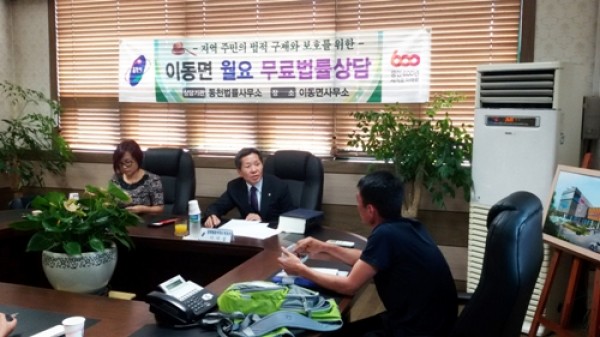 용인시 처인구 이동면의 ‘월요 무료법률상담 서비스’가 지난 9월 1일 면사무소 면장실에서 6명의 주민에게 3회째 상담을 진행했다. 동천법률사무소 김용숙 소장과 이기석 대표 변호사는 채권행사, 미수령한 자재납품비용 청구, 채무변제 유예방법, 8개월째 임차료를 내지 않고 있는 세입자 조치방법 등 일상 속 법적 문제 해결을 위해 적극적인 도움을 주었다. &…