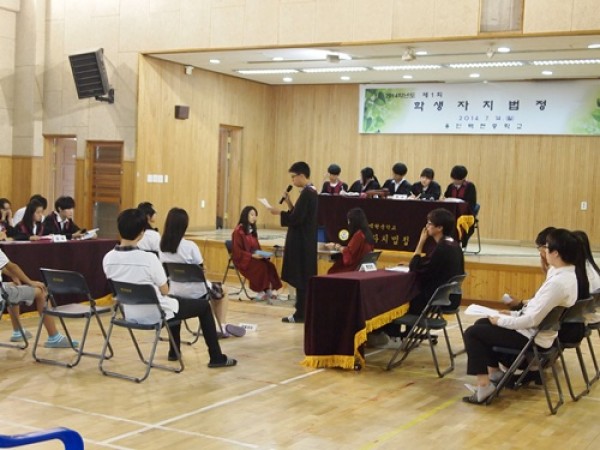 용인 백현중학교 에서 학생 스스로 소통과 자치를 통해 학생 중심의 행복한 학교 문화를 만들어가기 위한 학생자치법정이 교장을 비롯한 교사들이 참관한 가운데 강당에서 지난 7월 14일 학생들이 직접 자치법정을 열어 학생활동을 벌였다. 백현중학교에서는 학생들이 스스로 만들어가는 학교문화로서의 자치법정은 벌점초과자에 대한 교육 처분을 목적으로 학생들로 구…
