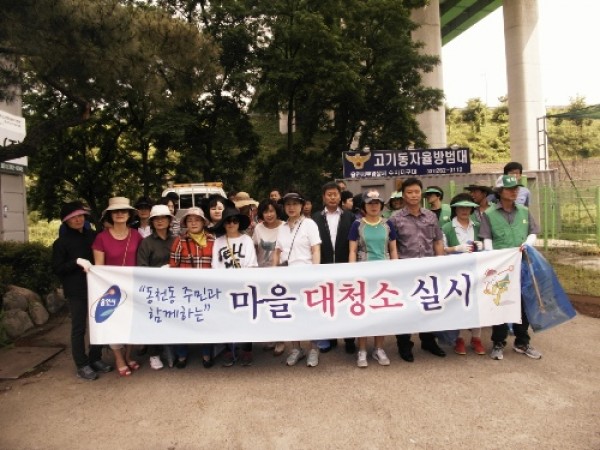 용인시 수지구 동천동 주민센터는 지난 12일 본격적인 행락철을 맞아 유관단체 합동으로 고기동 유원지 입구부터 계곡 상류까지 약 3km 구간 및 인근 도로변 등을 집중적으로 환경정비하여 깨끗한 고기동 만들기에 나섰다. 이날 환경정비에는 동천동 주민센터 직원과 통장협의회, 주민자치위원회, 새마을지도…
