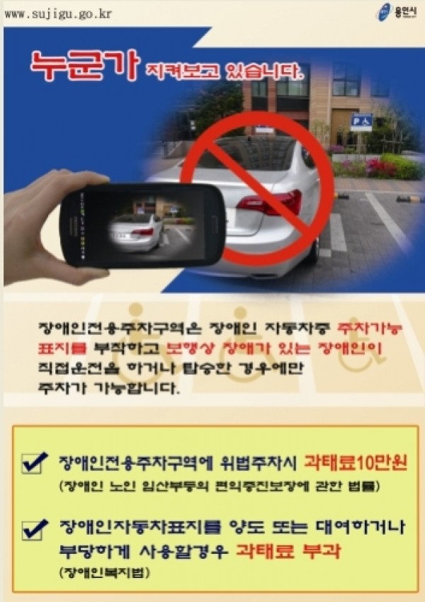 수지구 장애인주차구역 불법주차 스마트폰이 지켜본다