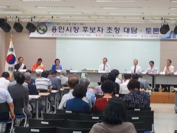 사) 용인시 아파트 입주자 대표 연합회 주최 용인시장후보 초청대담 토론회가 지난 27일 수지구청 대회의실에서 200여명의 관계자들이 참석한 가운데 기호 1번 정찬민 후보가 불참하고 새정치민주연합의 기호2번 양해경후보, 4번의무소속 김상국후보, 5번의 무소속 김학규후보가 참석한 가운데 열렸다. 이날 후보들은 기호순서에 따라서 자신의 공약사항에 대해서 모두발언을 하…