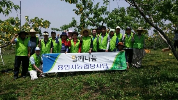 용인시 관내 농협 3급 이상 임직원으로 구성된 『함께나눔용인시농협봉사단』20여명은 27일 본격적인 영농철을 맞아 일손부족으로 어려움을 겪고 있는 백암 소재 혜성농원(대표 황강하)을 찾아 복숭아 적과 등 일손돕기를 실시하였다. 이번 일손돕기는 인력부족 뿐만 아니라 가족의 건강이 좋지 않아 특히, 어려움을 겪고 있는 농가를 선정하였으며, 일손돕기 농…