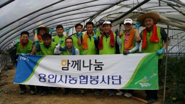 용인시 관내 농협 3급 이상 임직원으로 구성된 『함께나눔용인시농협봉사단』20여명은 5월26일 처인구 이동면 소재 박명순 농가을 찾아 토마토 순자르기 등 일손돕기를 실시하였다. 이날 봉사단을 이끈 신갈농협 김종기 조합장은 “인력난으로 어려움을 겪고 있는 농가를 위해 농촌일손돕기에 앞장서준데 대해 깊은 감사를 드리며, 우리의 작은 도움이 농가에 조금이나…