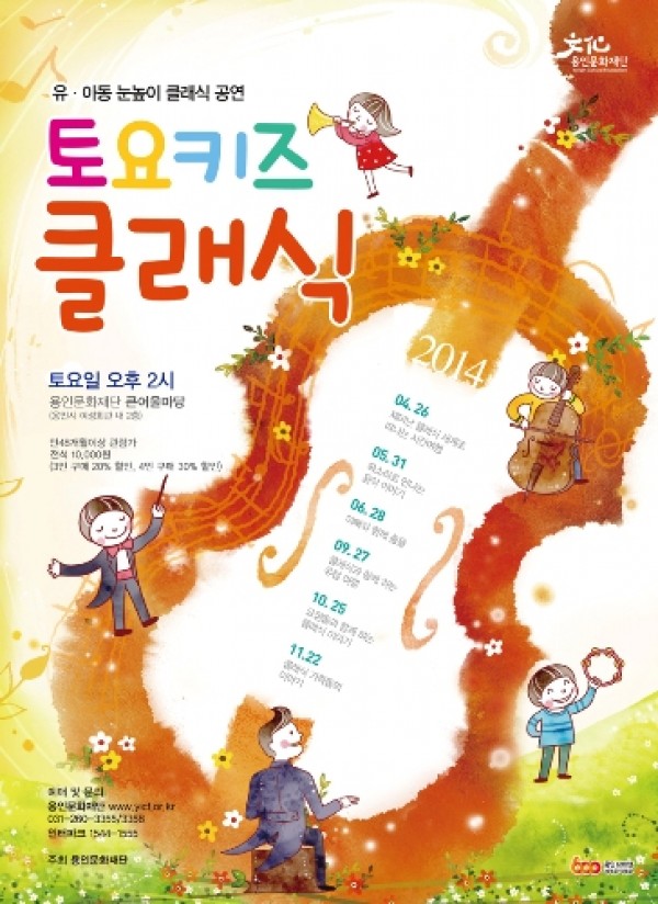 (재)용인문화재단(대표이사 김혁수)은 2013년 전회 매진을 기록하며 많은 관객들에게 호평을 받았던 <토요키즈클래식>의 5월 공연을 5월 31일(토) 오후 2시 여성회관 내 큰어울마당에서 개최한다. 만 48개월 이상 어린이를 대상으로 하는 <토요키즈클래식>은 어린이 관객의 눈높이를 고려한 해설과 작품으로 꾸며지며, 유·아동에게 …