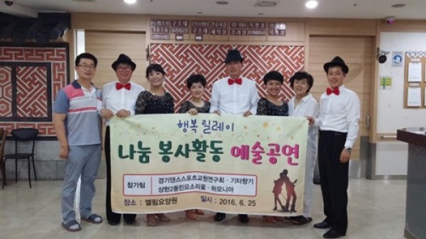 용인신리초 댄스스포츠교원연구회 죽전엘림요양원 나눔의 봉사활동 용인 신리초등학교(교장김오영)에서 마을공동체 사업으로 진행되고 있는 댄스스포츠 평생교육팀은 25일 죽전에 있는 엘림 요양원에서 요양 중인 어르신들과 운영진을 위하여 예술 공연을 하였다. “행복릴레이 나눔 봉사활동 예술공연”을 주제로 …