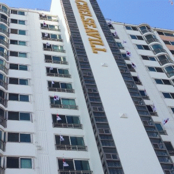 전대리 조양아파트 전세대 태극기 달기 운동 자체 추진 화제