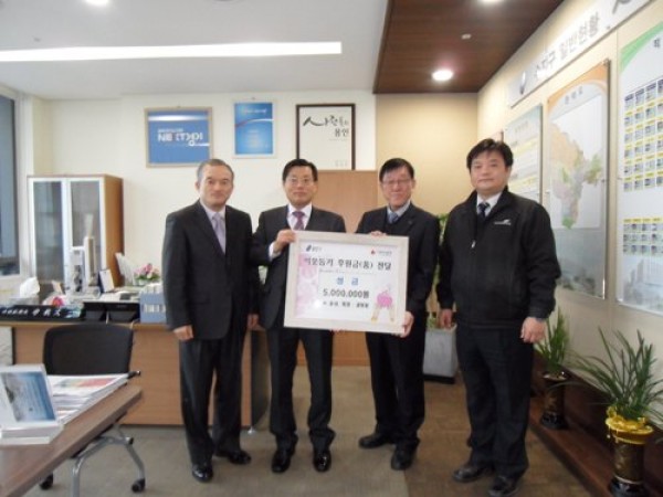 (주)윤성(회장 권영재)은 25일 수지구청에 “수지구 저소득층 가정에 작은 도움이라도 드리고 싶다”며 500만원의 성금을 전달했다. (주)윤성은 수지구에서 전문 낚시대, 자전거 등을 취급하는 수입·판매업체로 성금 전달식에서 권영재 회장은 “주위에 한부모 가정, 소년소녀가장, 독거노인 등 어려운 이웃들이 혼자가 아니라는 따뜻한 나눔의 정을 느꼈으면 좋겠다…