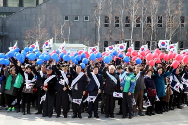 용인시는 올해 광복 70주년과 제96주년 3.1절을 맞아 광복의 의미를 되새기고 애국심을 고양하기 위한 ‘나라사랑 태극기달기 운동’ 캠페인을 펼쳤다. 이번 캠페인은 26일 포은아트홀 광장에서 정찬민 용인시장을 비롯, 각급 기관․단체와 시민 등 400여명이 참여한 가운데 태극마크 퍼포먼스로 진행되었다. 400여명의 시민 참여자가 한마음으로 빨…